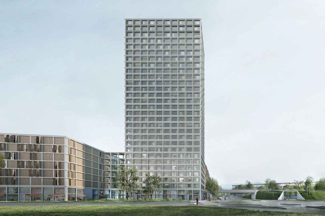 Minergie-P-Eco Standard, Holzhybrid-Architektur, Solaranlagen auf den Dächern, vertikale Gärten an den Gebäuden sowie die Glatt als Heiz- und Kühlwasser-Lieferant: AM RING steckt voller nachhaltiger Energie- und Gebäudetechnik.